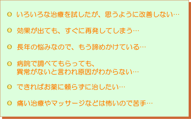 “病院では改善しにくい…”、”どうすれば治るのかわからない…”