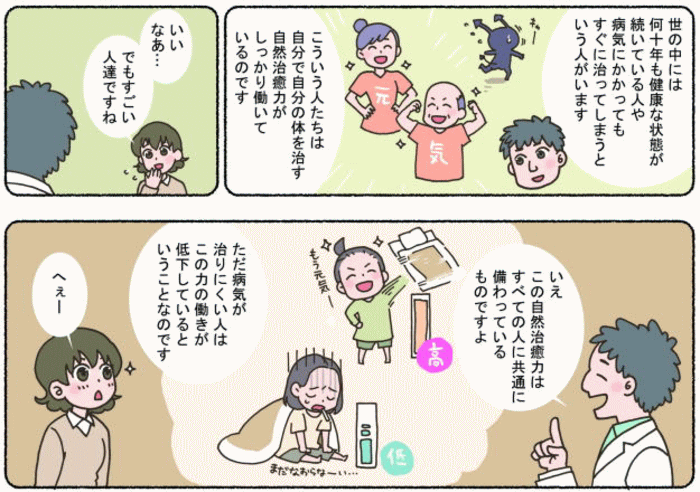 自然治癒力に関するお話を、簡単にマンガでご紹介いたします!